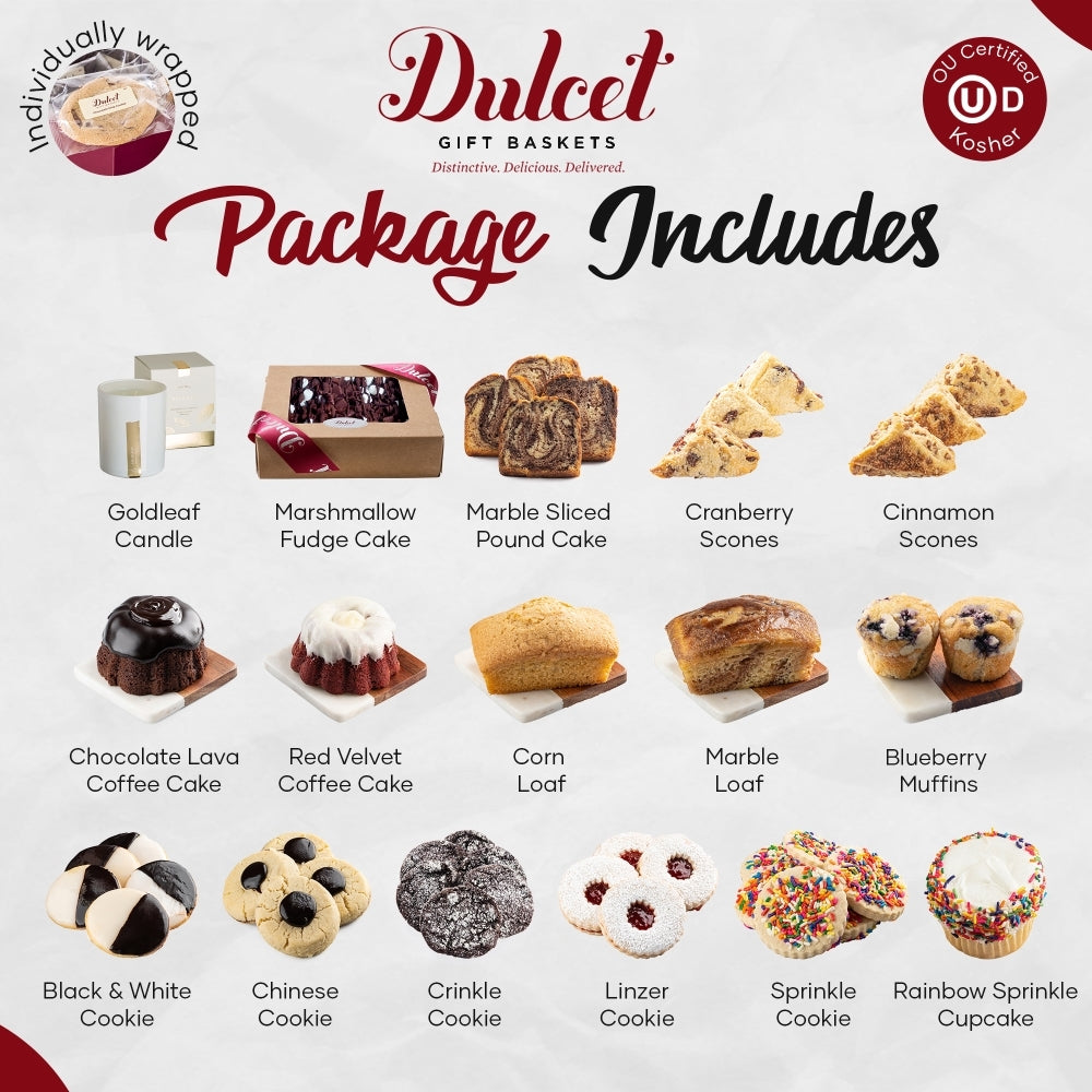 Indulge in our three-tiered Cookies & Treats Gourmet Gift Tower—a stunning display of artisanal delights that's practically begging to be devoured. Discover layers brimming with hand-crafted treasures: blueberry and cinnamon scones, marble and corn loaves, sumptuous muffins, and more, all crafted with premium local ingredients. The crowning jewel? A beautifully scented candle that makes a perfect keepsake long after the treats are gone. Personalize your gift with a heartfelt message and prepare for pure joy on their face!
