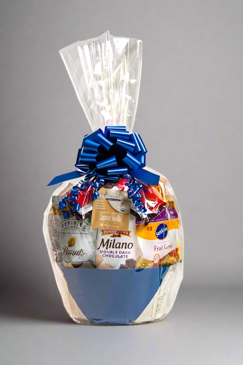 Experience a touch of luxury without the hefty price tag with our Classic Gift Basket. Ideal for gatherings or as a thoughtful present, this selection is beautifully arranged to add a dash of fun and indulgence. From buttery cookies to crisp crackers and Goldfish, each item is meticulously selected to offer a truly delightful snacking experience. It's the perfect choice for corporate gifting, impressing friends and family, or simply treating yourself.