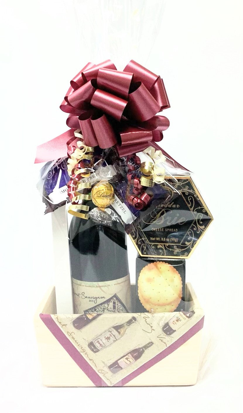 Includes a 750 ml bottle of wine with options like Blush, Pinot Grigio, Riesling, Merlot, Winter Mountain Red (Sweet Red Blend), Cabernet Sauvignon, and Winter Mountain White (White Sweet Blend).