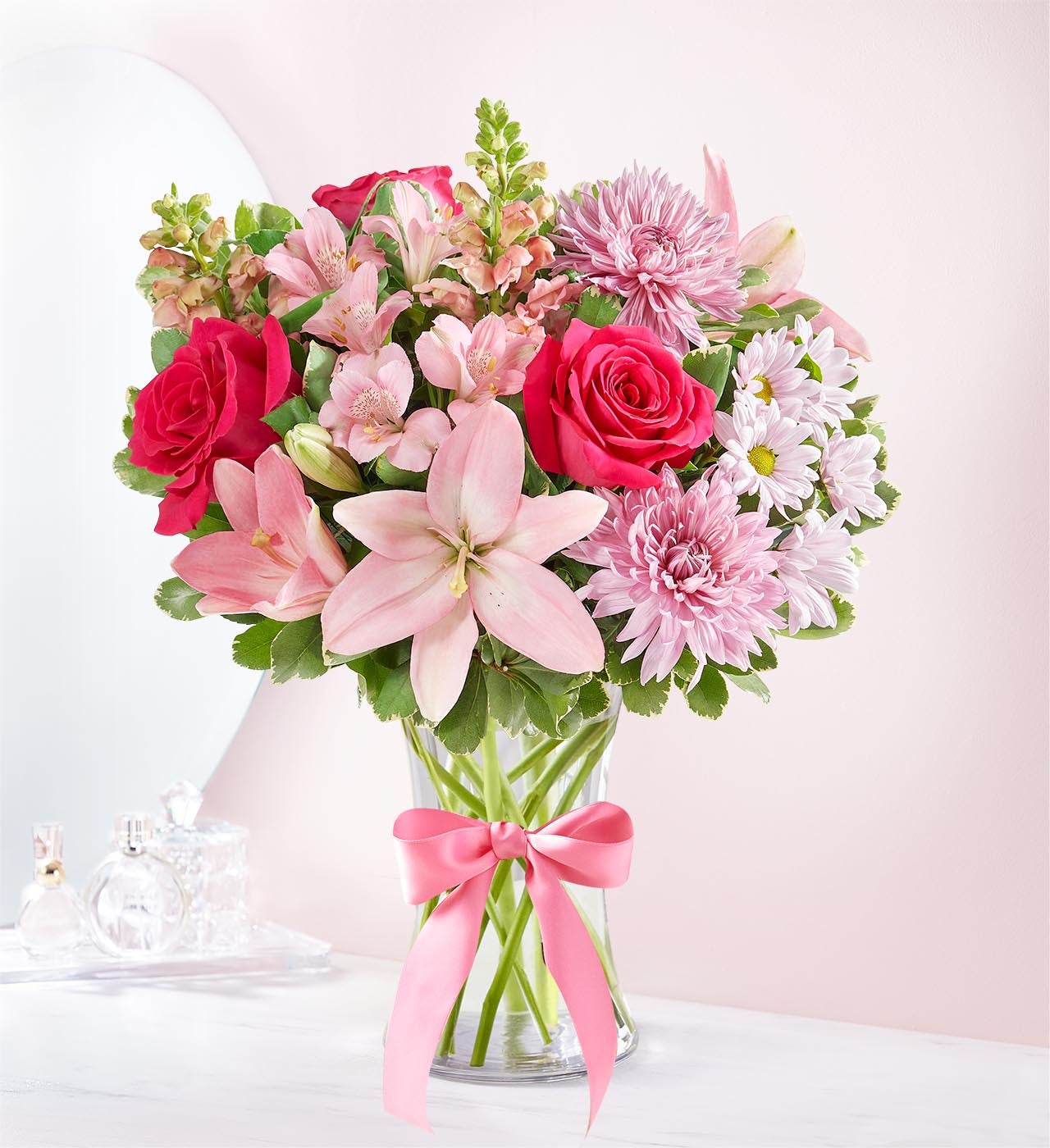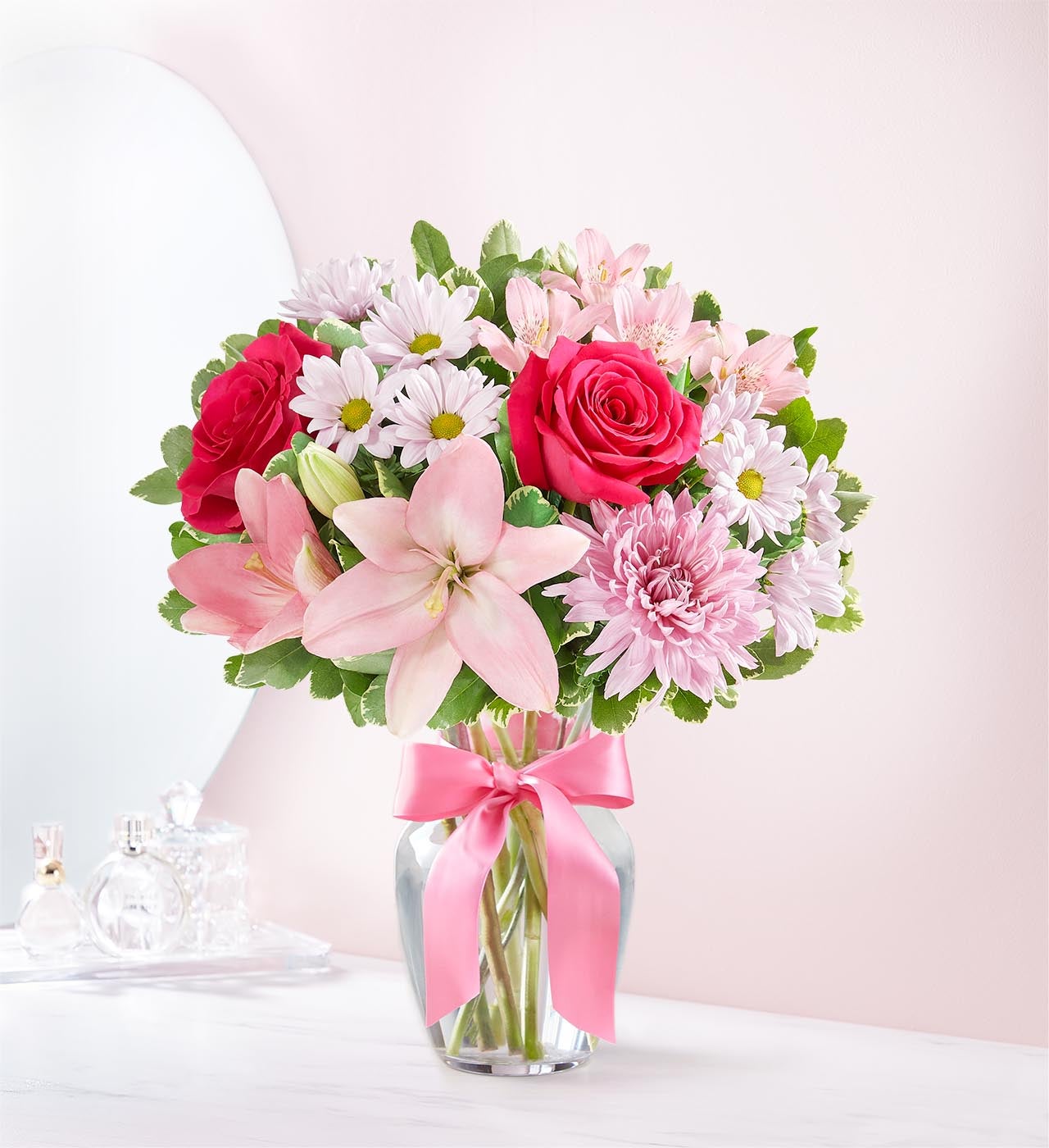 Celebrate Mom and her lifetime of comforting hugs with our Mother’s Embrace bouquet. This beautiful arrangement features pink and lavender blooms designed by hand in a classic clear glass vase, making it the perfect way to express your love and gratitude. Whether you're celebrating Mother’s Day together or sending a smile from miles away, this bouquet is a heartfelt token of your appreciation.