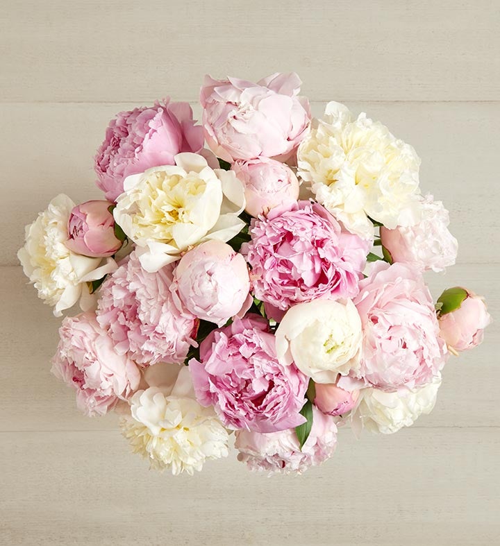 LIMITED AVAILABILITY! Bring beauty and elegance to every moment with our lush peonies. From their large, layered petals in sweet pink and white, to their rich fragrance and texture, these popular blooms are an expression of joy with a fresh-from-the-garden charm.