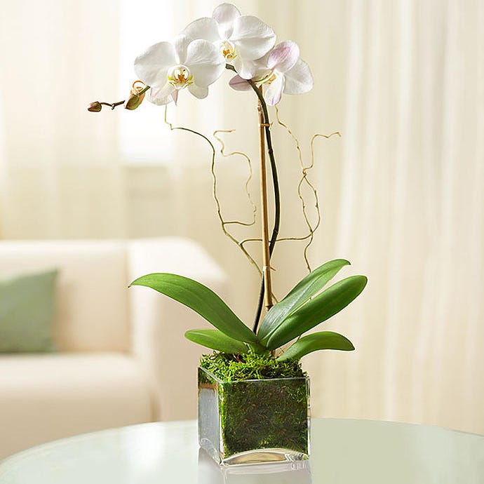 Step 1: Once you recieve your Purple Phalaenopsis Orchid flower delivery, cut stems 1/2 of an inch with scissors (if applicable).